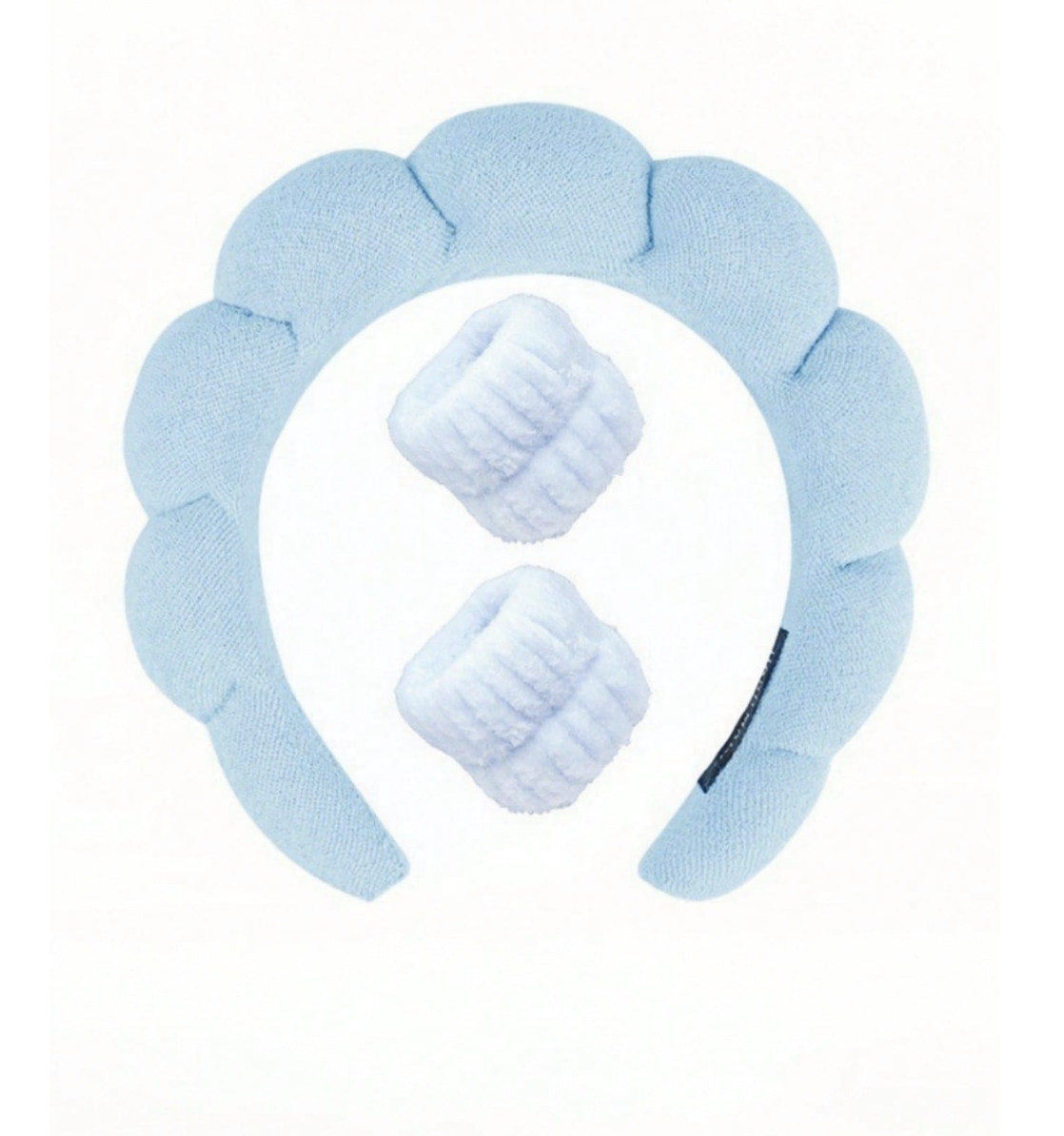 Kit Tiara Nuvem + Pulseira. Perfeito para aquele ritual de skin care com estilo e praticidade durante os cuidados diários com a pele e a maquiagem. A tiara elástica se adapta confortavelmente à cabeça, mantendo os cabelos no lugar enquanto você aplica seus produtos favoritos. E as pulseiras servem para água não escorrer ao braço.